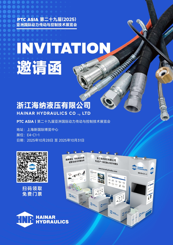 We are thrilled to announce that Hainar Hydraulics Co., Ltd. will participate in the 29th PTC ASIA, the premier event for power transmission and control technology in Asia, held from October 28 to 31, 2025, at the Shanghai New International Expo Center.